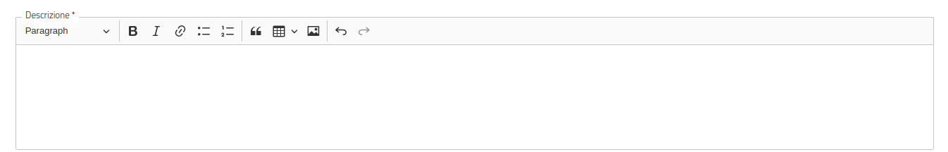Nei campi di testo più lunghi è possibile andare a formattare il testo come in un editor di testo (Word, LibreOffice write,…) dando la possibilità di creare titoli, sottotitoli, inserire immagini e costruire tabelle che poi verranno visualizzati correttamente all’interno della pagina.